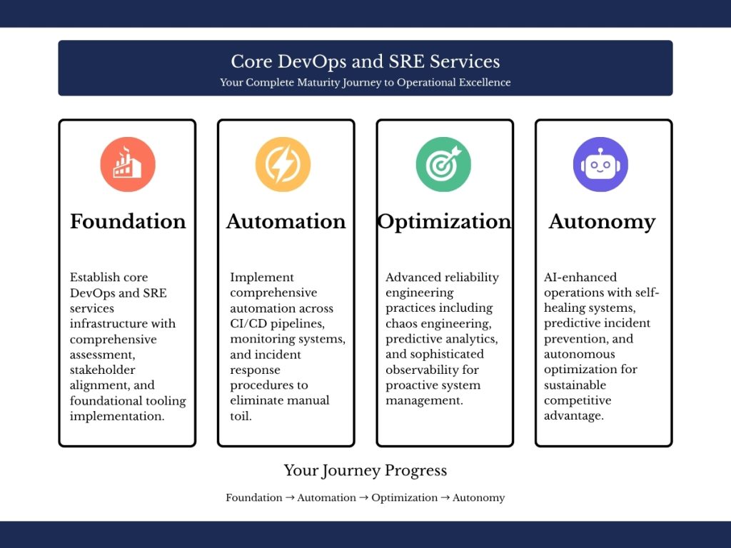 The age of fragile systems and reactive operations is over. In contrast, core DevOps and SRE services have become the new baseline for any organization that is truly serious about performance, uptime, and customer trust.